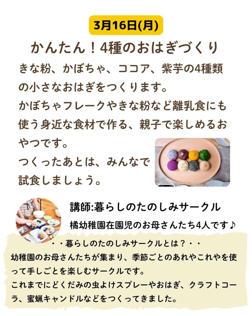※食物アレルギーのある赤ちゃんがいる可能性もありますので、こぼれないものにするなどご配慮下さい。
