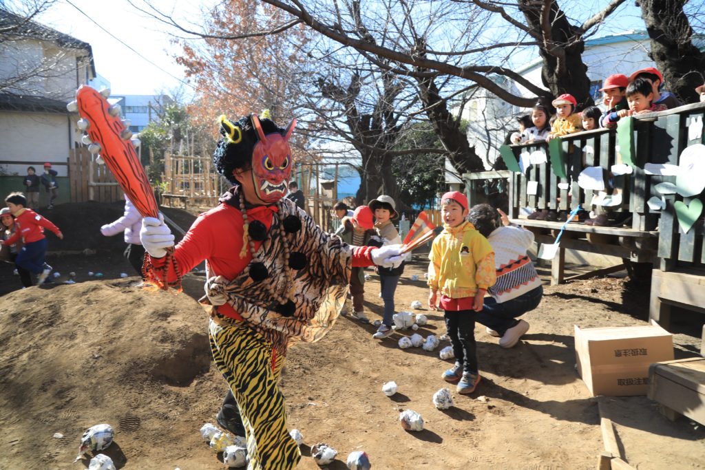 節分の日、橘幼稚園にたくさんの鬼がやってきました!